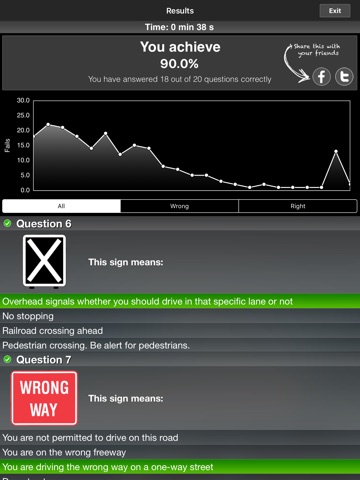 The application saves the result of each question answered and a history of failures and successes to offer the most advanced system of all the statistics.
