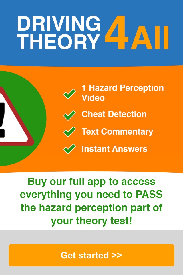 * 1 HAZARD PERCEPTION VIDEO - This is a small sample of the 78 hazard perception videos you get with our full apps. You can access 1 video in each of Driving Theory 4 All’s free hazard perception apps (volumes 1-8).