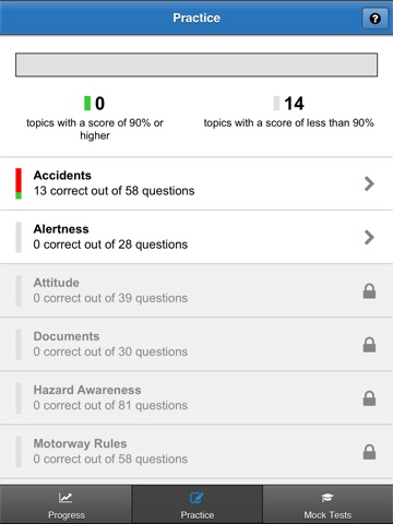 * SYNCHRONISATION - If you are an existing customer of Driving Theory 4 All and have a username and password, you can synchronise your scores with this app.