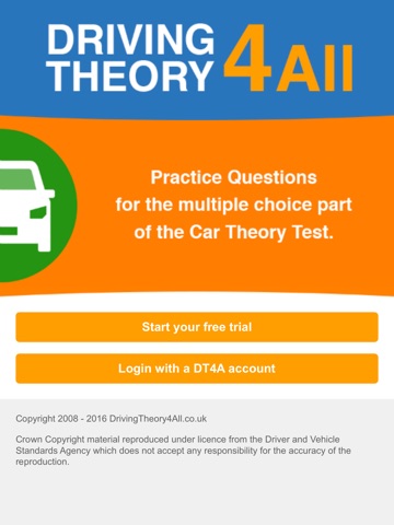 This app can also be used without a Driving Theory 4 All account, but is limited to a small sample of the questions and answers.