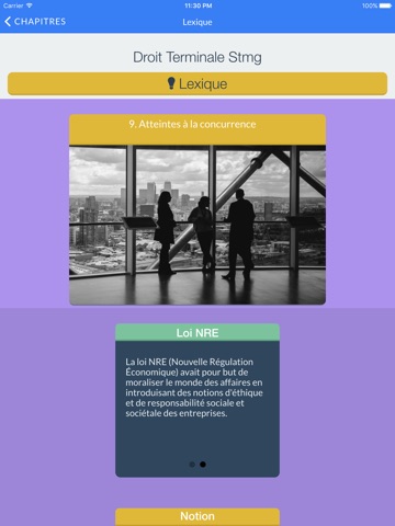 => Le cours aborde la totalité du programme de Droit en 12 chapitres, à travers plus de 100 concepts expliqués et illustrés de manière progressive. Les chapitres sont agréablement structurés pour faciliter une progression visuelle et un repérage interactif dans le programme. Chaque chapitre aborde les notions essentielles de manière clairement identifiée. Chaque notion reçoit à la fois une explication détaillée et une illustration par un exemple concret pour faciliter la compréhension.