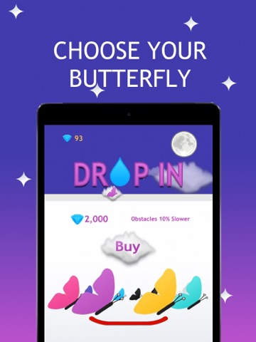 You need maneuver the flight of a butterfly by tapping on either side of the screen. Collect points, gems and power ups while avoiding Drops and Spikes.
