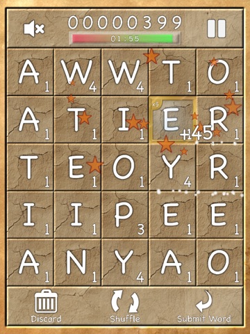 Dropwords 2 is word-finding puzzle. Valid words boost your score and the dwindling timer; used letters disappear and new ones drop from above.