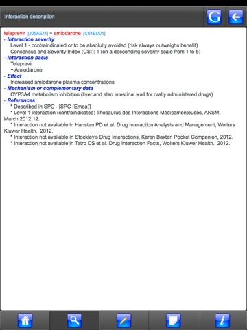 Drug Interactions is a powerful international application to list and document interactions for all drugs. It also includes Prescription Checker, our application to detect more than 200 million potential drug interactions between two pharmaceutical forms. Drug interactions are detailed and drugs can be searched for from generic or brand names. Substitution by a similar drug or search for a drug are facilitated by browsing our comprehensive pharmacological classification. Patient management was added from version 1.2.7.