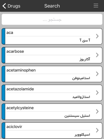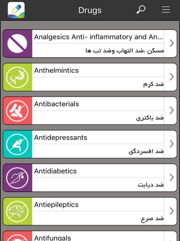 این اپلیکیشن داری سیستم جستجوی قوی دارو بر اساس نام فارسی و انگلیسی می باشد