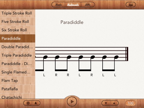 - Swite up to display a table with a beats, rudiments or fill selection.