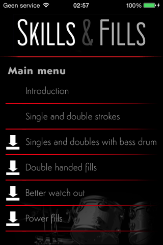 Download the app and get 4 drum fills for free! To unlock the other chapters just tap on one and proceed paying only € 6,99 to get acces to over 60 tough drum fills!