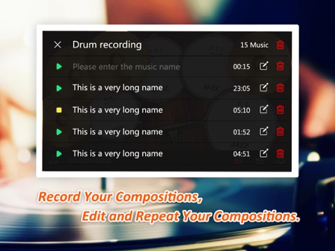 * Play drums and cymbals along with the beat of your songs