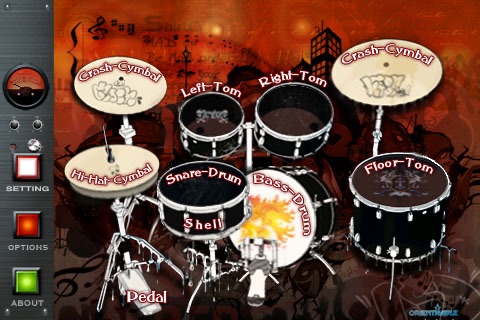 This is the Free version of Drum Player 3.0. It’s aimed to turn your iPhone or iPod Touch into a virtual drum kit: Bass drum, Snare drum, Toms, Floor tom, Hi-Hat and Crash cymbal. In this application, you’ll totally enjoy a new flavor combination of overall layout and realistic scene. As it comes to the sound effect, we’ve taken a more professional record technology to produce all the drum sounds.