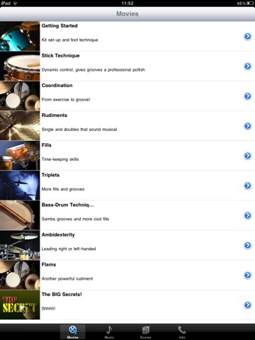 Jazz Hound said: Drum Secrets is a fantastic app both in terms of potential learning opportunities & the sheer amount of practical information.