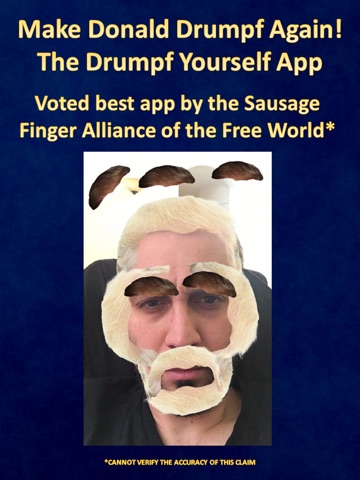 Check out the FREE version of Drumpf Yourself before you buy at the link below! Upgrade to the PRO Selfie App with no advertisements and a total even more hilarious hairs to choose from including the Trump Steak, the Trump Nigiri , the Trump Hampster, the Trump Blowing in the Wind, and the Drumpf Yourself Hat