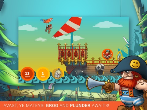 Monkey and Parrot have stolen a treasure map – the last obstacles on their road to riches are a crowd of pirates and Monkey’s weakness for alcohol. Try to help Monkey get out of the hands of pirates and addiction by steering him away from corsairs and sea beasts, as Monkey travels from ship to ship, running from the furious Pirate Captain.