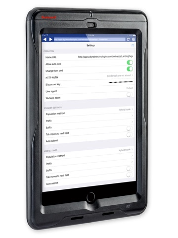 The Dryrain Technologies Enterprise Browser for MFi features an all-new Settings page that gives the user complete control over all aspects of the App and its operation. The ability to set the default homepage, customize the buttons/colors/operation, and control how the scan and MSR data is processed are just a few of the features available in the new Settings page.