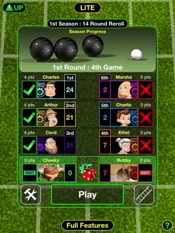 Strategic reroll selections and luck will move your dice closer to the white Jack dice. Just like real Bowls, the closer your dice values are to the white Jack dice, the higher your scores.