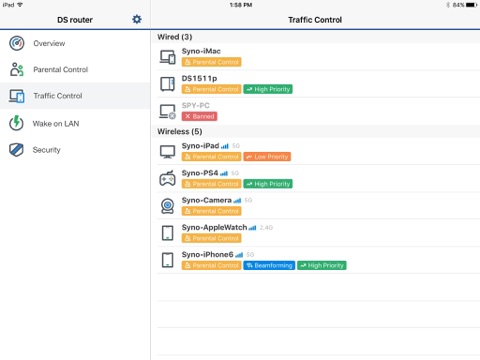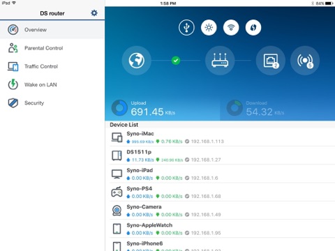 DS router allows you to manage you network with just a few taps whenever you want, wherever you go. Easily set up brand new Synology Routers, monitor live traffic, and protect your childrens Internet activities with the comprehensive features of DS router.