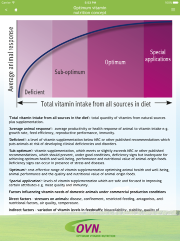 Vitamins are the foundation for balanced animal nutrition. These guidelines help you to define the Optimum Vitamin NutritionTM (OVNTM) levels for 8 groups of farmed and companion animal species, taking into account subspecies and their different life stages. The guidelines also reflect the many factors influencing animals’ feed requirements, ensuring that vitamin fortification does not limit performance.