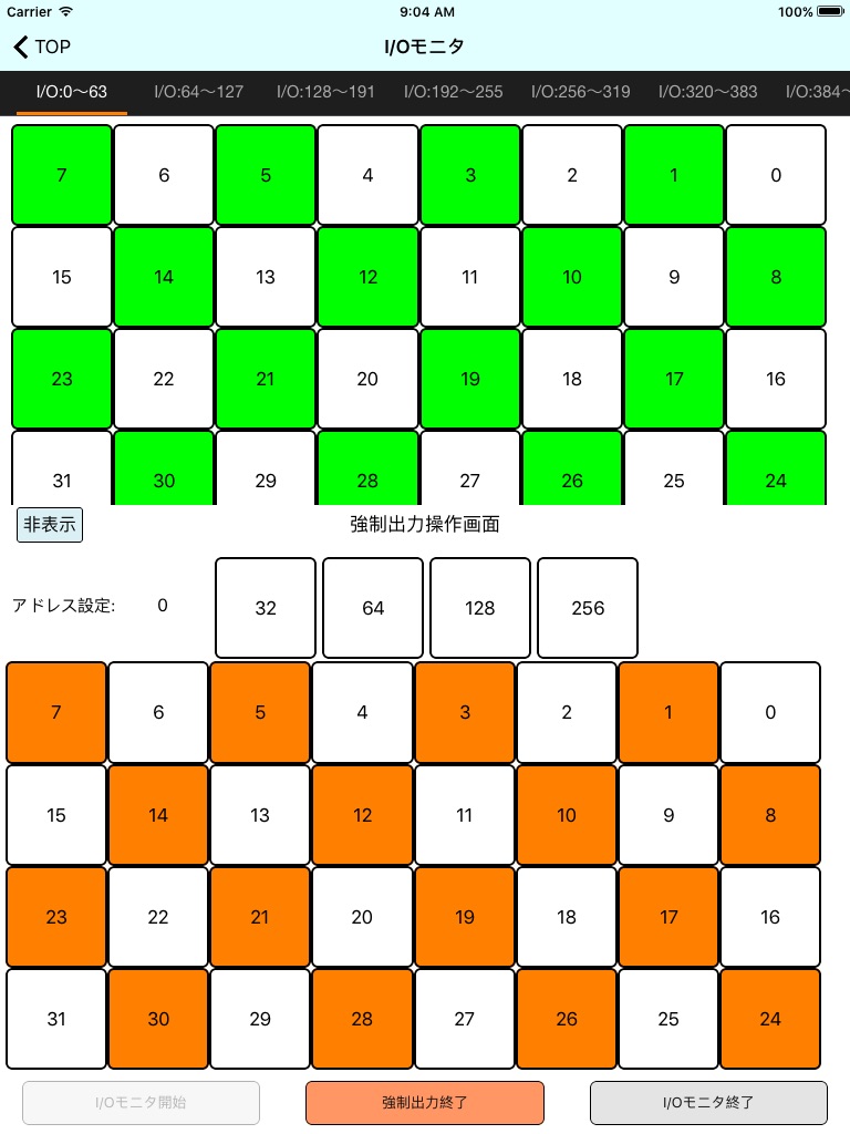 また、強制出力操作画面を操作することで、I/O強制出力が可能です。