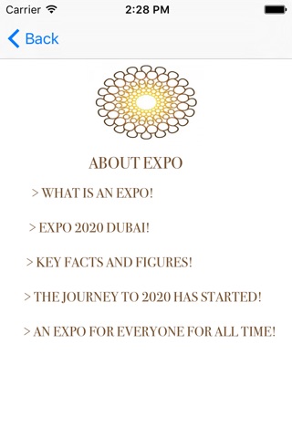 Fatmah Salem took the important parts from the official website that is here http://expo2020dubai.ae/ and presented in the shape of mobile app. In future version, Fatmah will try to update it more and it will reflect the same as website.