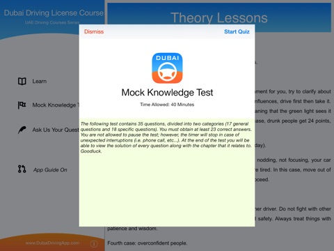 A universal iPhone/iPad/iPod-touch application that introduces users to the driving rules in Dubai.