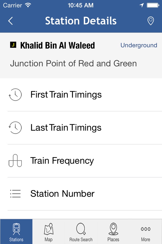• Information of all the lines, individual stations, first train timings, feeder bus service information, exit gates information, parking, lift, elevator facilities information etc.