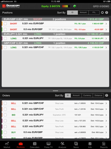 In order to let you trade your account from anywhere, app supports Edge/3G/Wi-Fi connection types with an automatic connection control system that adapts data flow size depending on the connection speed.