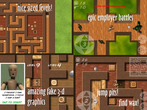 Dummy Hero is fast action maze adventure where you must rescue a young dummy, armed only with your block blaster. The Evil Hod and his henchblocks cubes will try to crush you as you work your way to the top of the tower. You will find ammo for your Blockbuster Pistol to help smash your way through each level, avoiding traps and finding power ups to help complete your mission. Hurry inside, action awaits, challenge is certain, reward is plentiful, A Hero is needed!