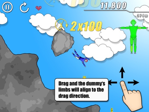 By taking direct control over the arms and legs of Dumpy Dummy, the success of the stunt lies in your hands. But be aware that making a good figure is not the only challenge on the way down.
