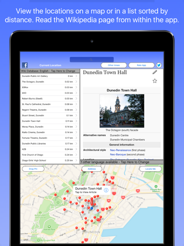Dunedin Wiki Guide shows you all of the locations in Dunedin, New Zealand that have a Wikipedia page.