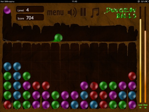 Dungeon Balls is a great, easy to learn puzzle game for iPhone/iPod Touch and iPad. The goal is to build 3 or more balls of the same color side by side to remove them from the board.