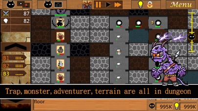 Adventurers have different occupations,they will be stronger with the evaluation of Dungeon. Adventurers also have different abilities, such as thieves can destroy the traps.Adventurers will also carry a item, you will get the item if they die. Besides,these items have different functions,remember to place it in the room.