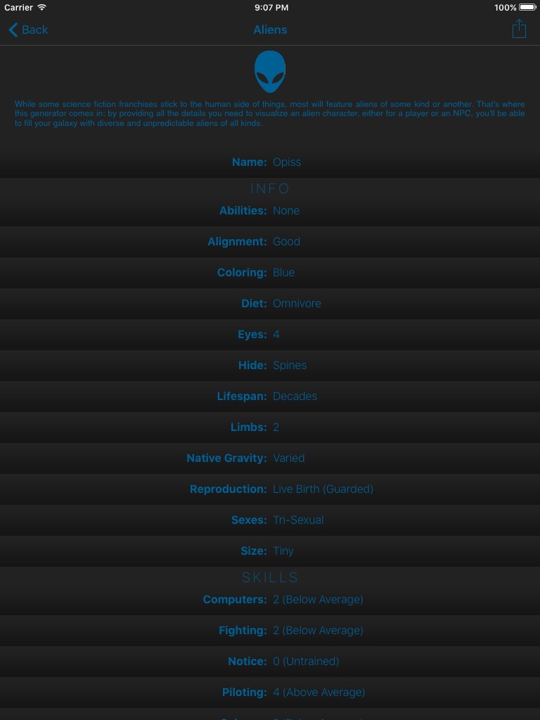 - Every character, creature, and world is brought to life with rich details: names, skills, solar system data, army unit types, and more. Need a new monster or culture? Just tap. Its that easy.