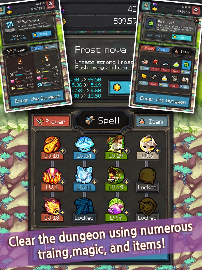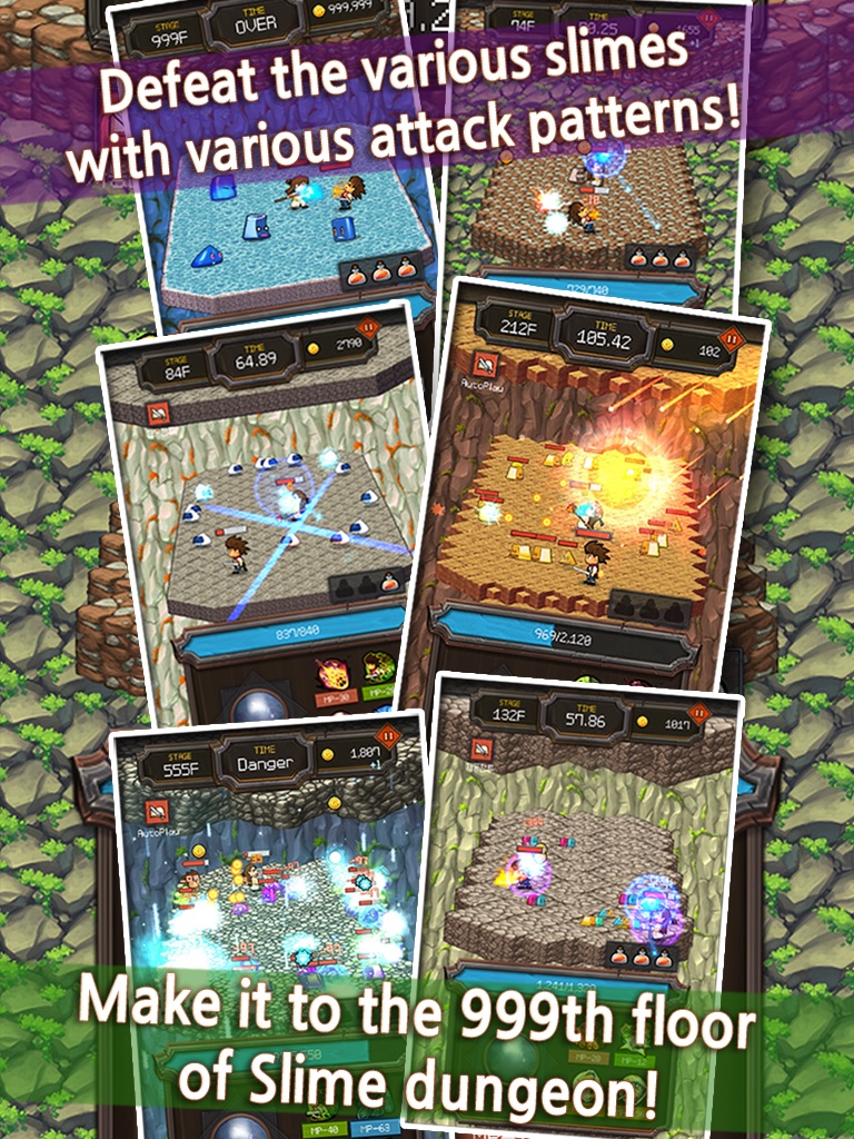 Explore the dungeon with 999 floors full of various slimes with a wandering warrior Jack, the Black Hair, and a magician Rose. Train your characters, discover new magic, and utilize numerous items to geto to the 999th floor and find out the cause of slimes rebellion!