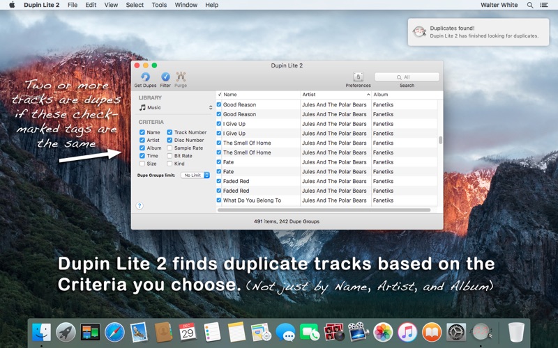 The application works great and is still the one of the best out there to remove duplicates from your iTunes library. I am disapointed there was no update to the original Dupin Lite and I had to repurchase an app I already paid for. Most applications reward returing customers, not ask them to pay more.