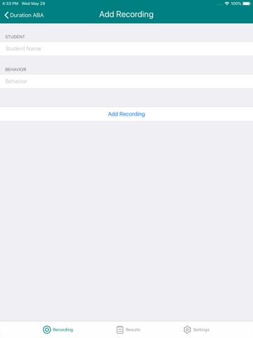 Duration Recording is a data collection tool used by special education teachers, therapists, and applied behavioral analysts. Theres no easier way to perform duration recordings than the Duration app for your iPhone® from elocinSoft.