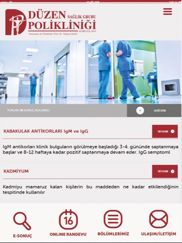 Düzen Sağlık Grubu Polikliniği test sonuçları, faaliyet gösteren bölümler hakkında bilgiler, güncel sağlık bilgileri, test rehberi ve daha bir çok konuda hizmet alabilecekleri inter aktif hizmetler uygulaması...