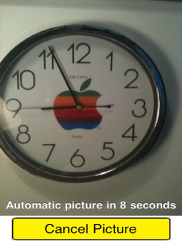 The app, by default, opens up the camera interface as it is started and presents the default focus square. A few seconds later, the picture is automatically taken and stored in the normal camera roll of previous pictures. Beeps and an onscreen display show the time remaining until the automatic picture is taken. A cancel button is also provided if the process needs to be canceled by the user. Makes it very easy to hold the iPhone with 2 fingers in any position and still get a good automatic picture.
