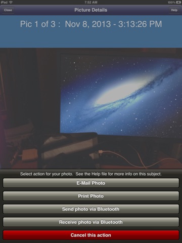 Left to right swipe actions on the image will advance the picture to the next or previous picture taken. Swipe actions work on both the basic Picture Details display and the full screen display modes.