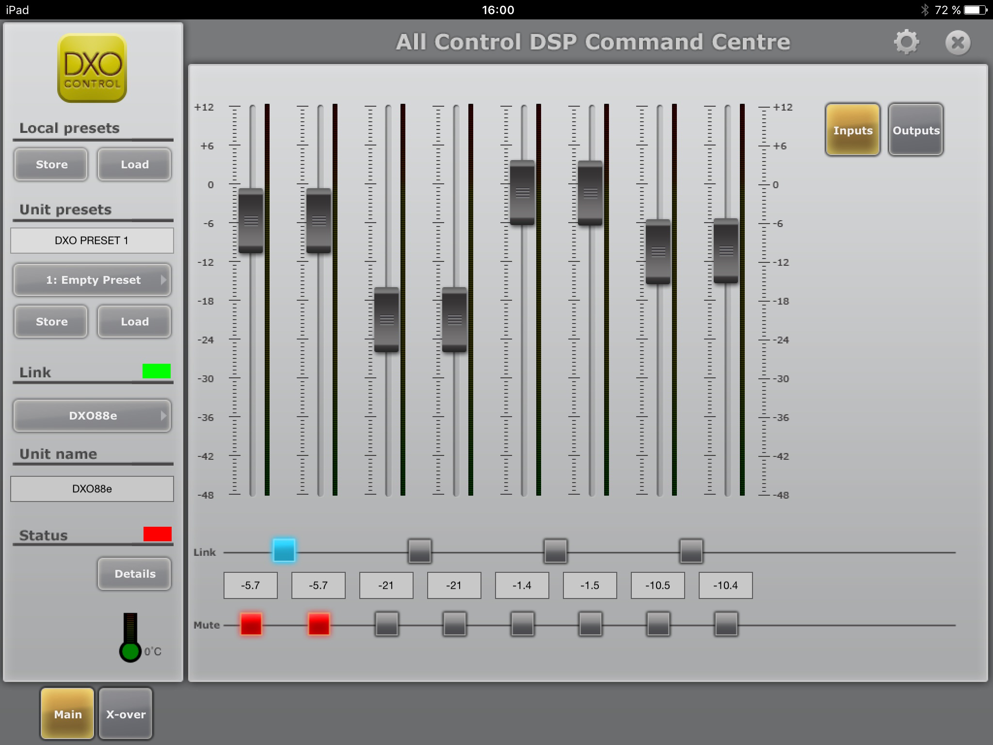DXO Control provides easy configuration of PA systems directly via iPad. The app supports the DXO-26PRO and DXO-48PRO controllers and the PRIME system amplifier by PSSO. Users gain full control over the built-in DSP modules. Activate presets and make individual adjustments as needed. DXO Control comes with all the features normally provided by the PC software.