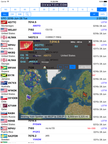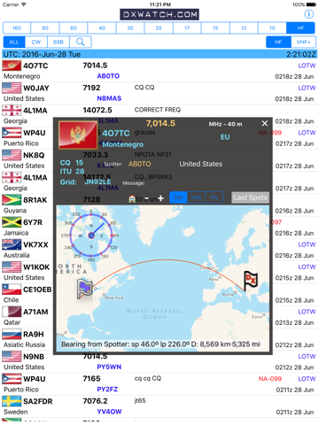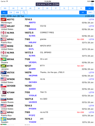 You can follow amateur radio DX spots trough the world wide DX cluster network.