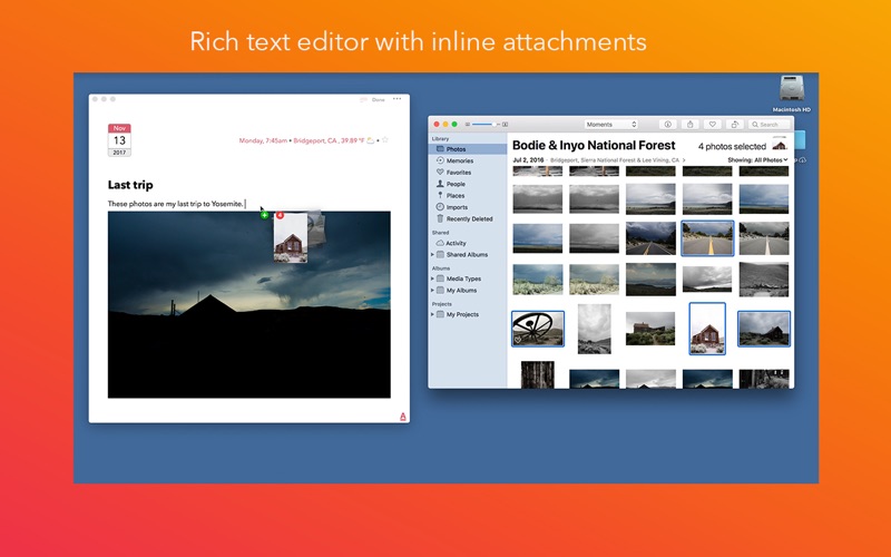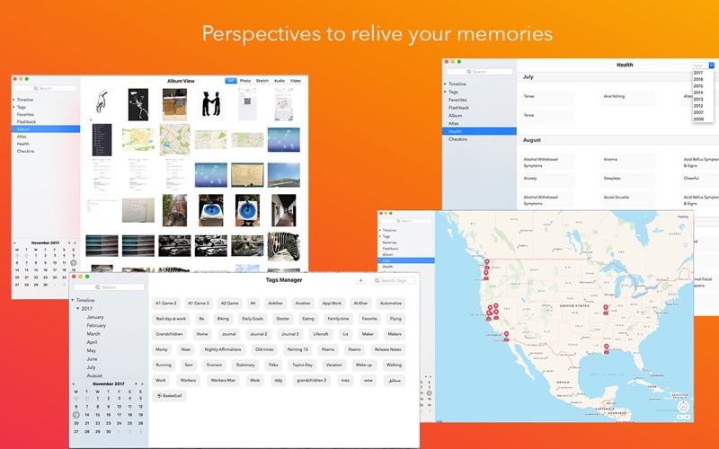 With Dyrii, you can take rich text entires containing inline photos, audio, video, location geo-tags, health/mood tags, and weather information. You can even capture hand written entires using Apple Pencil on iPad.