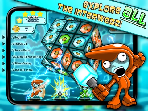 Explore the mysteries of the Internet alone or compete with friends for high scores and stars!