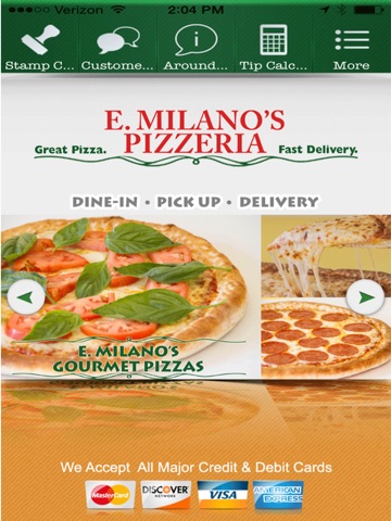 Your neighborhood Pizzeria, now mobile! View our menu and order online straight from the app, check-in with the app every time you visit us to unlock special coupons, redeem and keep track of your digital stamp card to earn rewards on future purchases, or send us a quote request for your next catering event!