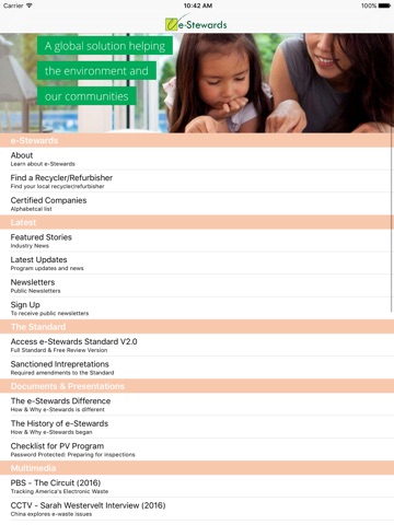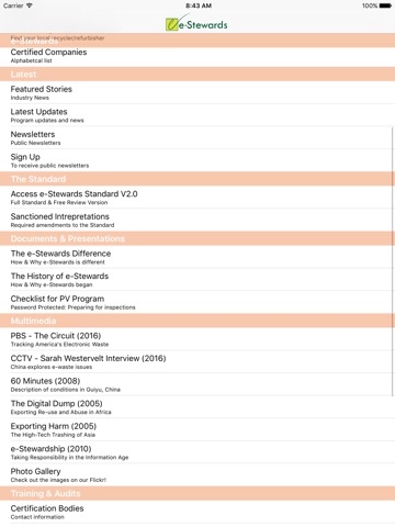 This e-Stewards App is designed to give users easy access to features on our website such as finding: