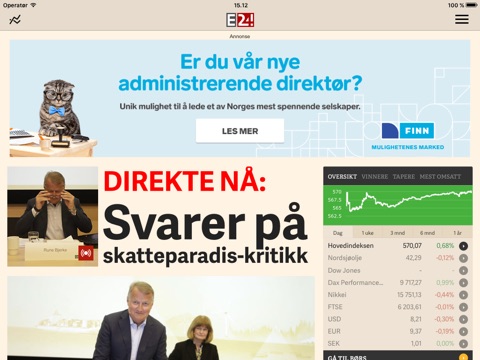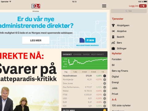 På E24 får du siste nytt, gode historier, innsikt og avslørende journalistikk innenfor næringsliv, norsk og internasjonal økonomi, børs og finans, olje og energi, oppdrett og havbruk, karriere og ledelse, teknologi, det grønne skiftet og privatøkonomi.