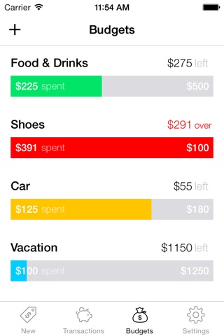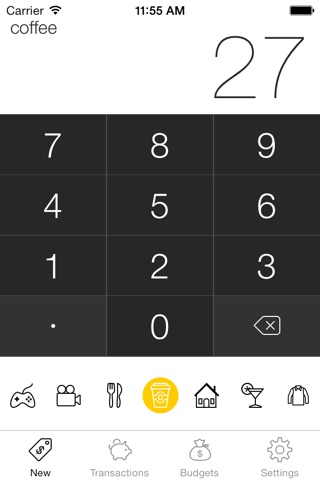 Adding transactions was designed for speed. With just 2 swipes, you can choose a category and save the transaction.
