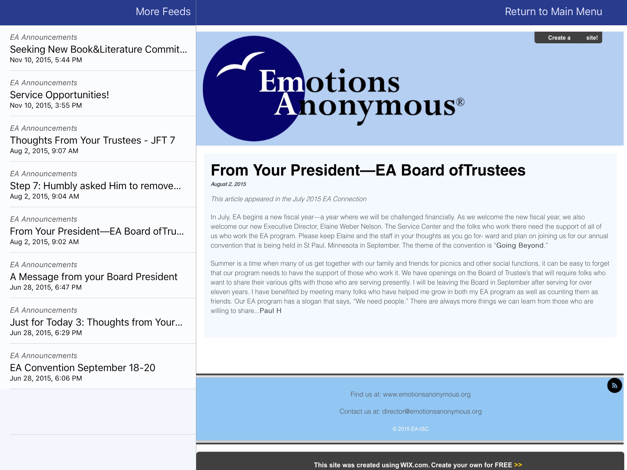 Tools and information for the Emotions Anonymous program of recovery. Emotions Anonymous (EA) is a 12-step program for people who are working to overcome emotional problems.