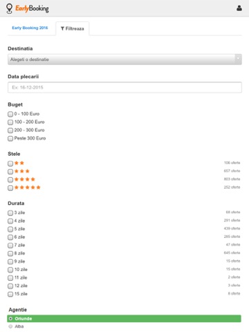 Cu aplicatia Early Booking vei fi la curent cu cele mai mari reduceri oferite de agentii, pentru rezervarea din timp a vacantelor.