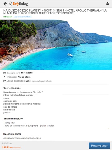 - Daca iti place sa-ti planuiesti vacanta cu cateva luni inainte, aici poti gasi cele mai bune oferte de Early Booking, cu pana la 40% mai ieftine ca in plin sezon.