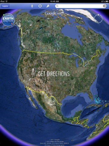 It just show the icon earth directions on top of google earth page and nothing more. You tap the icon and nothing happens. It does not open the page where you introduce the direction you want. There is no help. I tried on my iPhone and iPad. Same stuff.