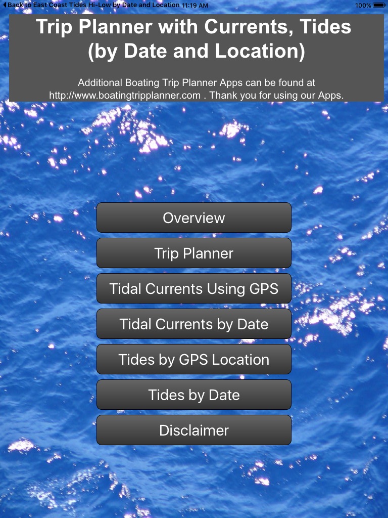 And now for the power of this app… You will be given a few choices on what time you should leave and what time you will arrive based on the tidal currents from the start of your trip to the end. Pick the quickest trip and save time and money on fuel!